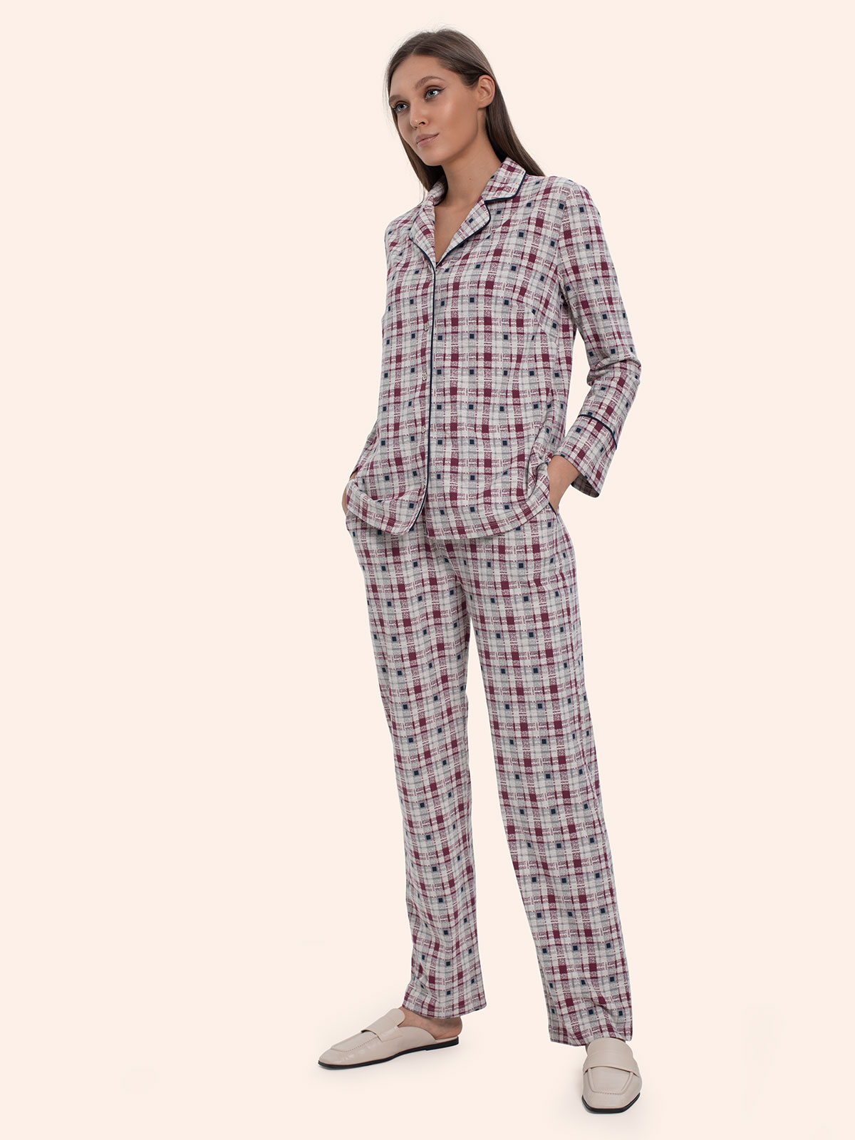 Женский домашний костюм в трендовую клетку из хлопка. Высококачественный материал в составе обладает высокой воздухопроницаемостью, отлично впитывает влагу и подходит даже для самой чувствительной кожи. Добавление эластана и полиэстера увеличивает износостойкость, прочность и обеспечивает стойкость цвета.