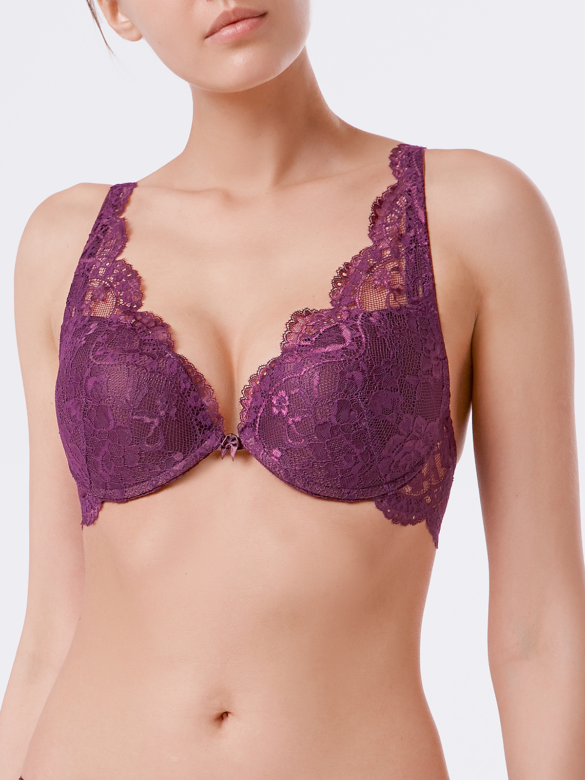 Глубокий и насыщенный винный оттенок в сочетании с невесомым кружевом – идеальный тандем для создания женственного образа. Бюстгальтеры в коллекции представлены в двух моделях - Push Up и с мягкой чашкой, а трусики - в виде классических слипов или практичных бразилиана.
