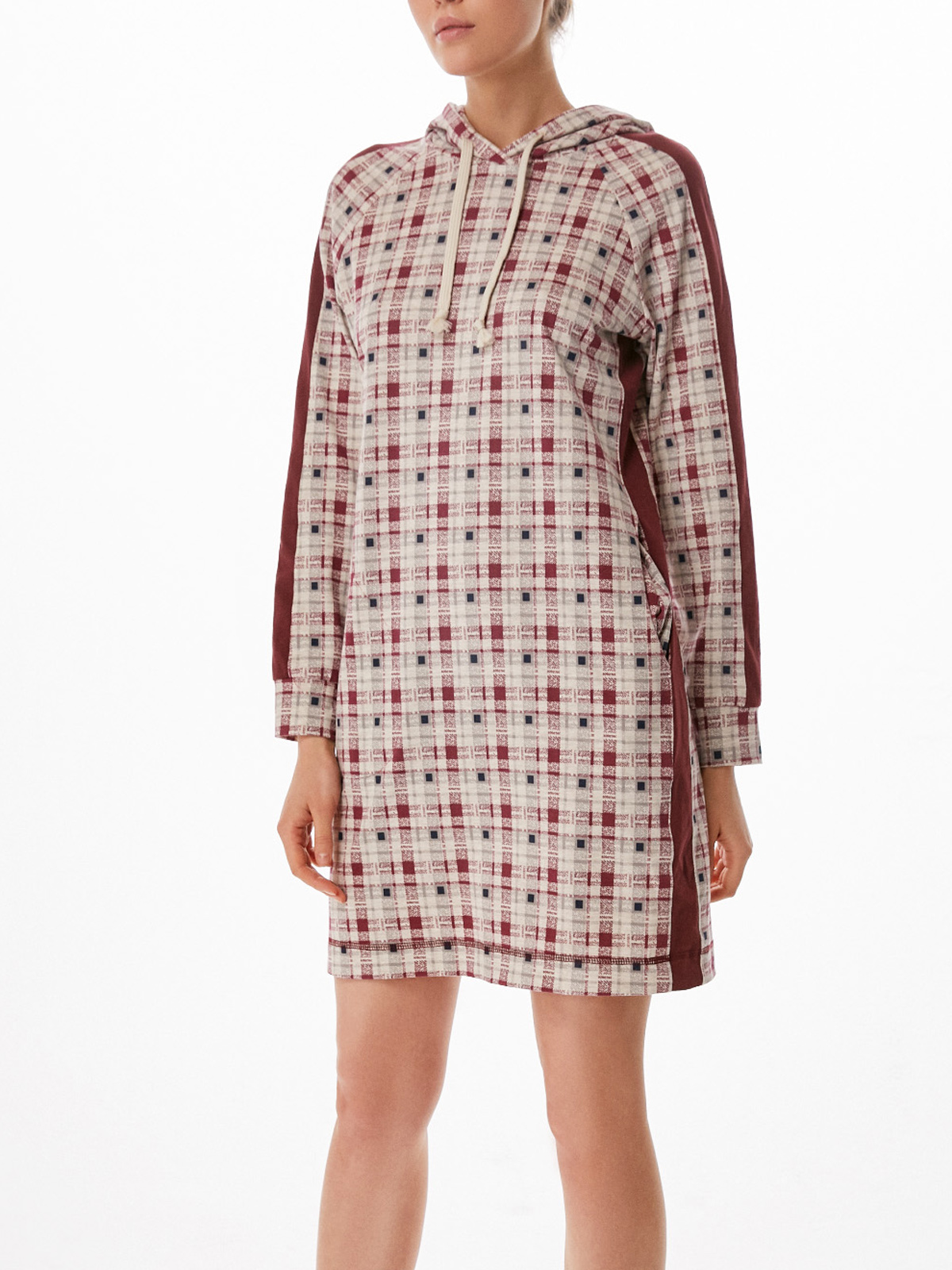 Женское домашнее платье с длинным рукавом и капюшоном. В составе высококачественный хлопок, который обладает высокой воздухопроницаемостью, приятен на ощупь и комфортно ощущается на теле. Благодаря лаконичному прямому силуэту, платье стильно смотрится, хорошо сидит и не стесняет движений. В боковых швах расположены карманы.